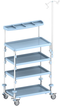 Поддон тележки выполнен из нетоксичного химически стойкого и ударопрочного полистирола и полированной нержавеющей стали.